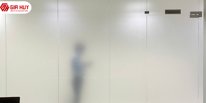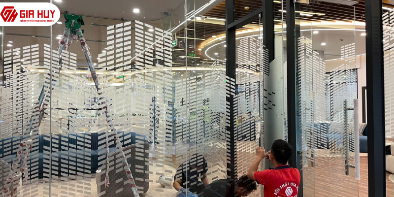 Khác với việc dùng rèm hoặc vách ngăn kín, decal dán kính mờ ngăn tầm nhìn trực tiếp từ bên ngoài, nhưng vẫn cho ánh sáng đi qua. Nhờ đó, văn phòng vẫn giữ được cảm giác thoáng đãng, sáng sủa và hiện đại.