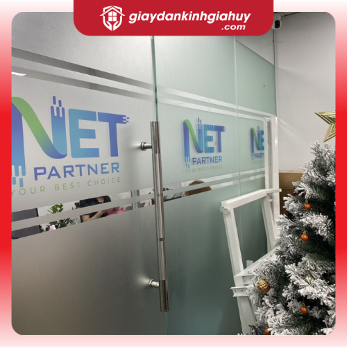 Công trình giấy dán kính mờ in màu logo được Nội thất Gia Huy thi công