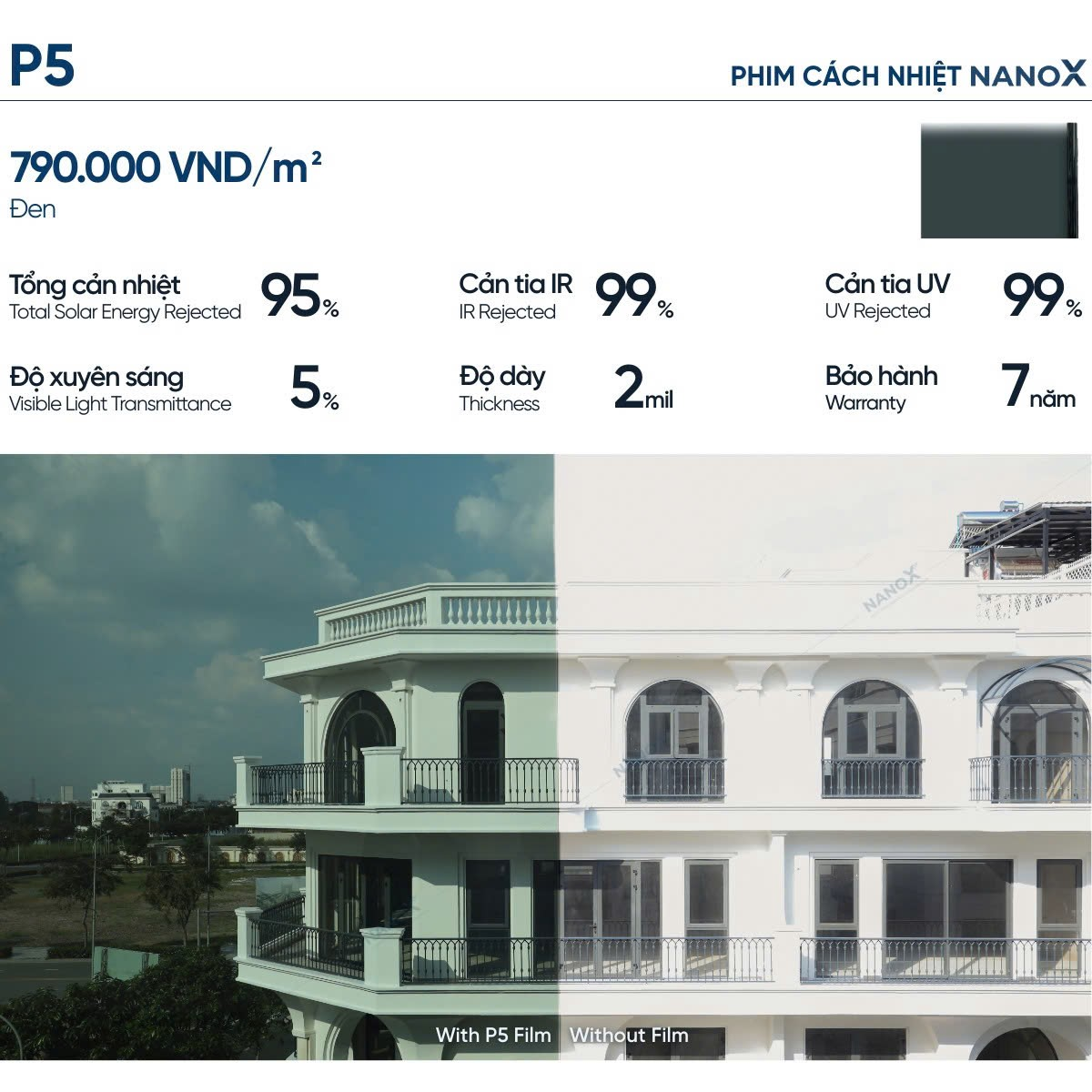 Báo giá giá phim cách nhiệt thương hiệu NanoX mã P5